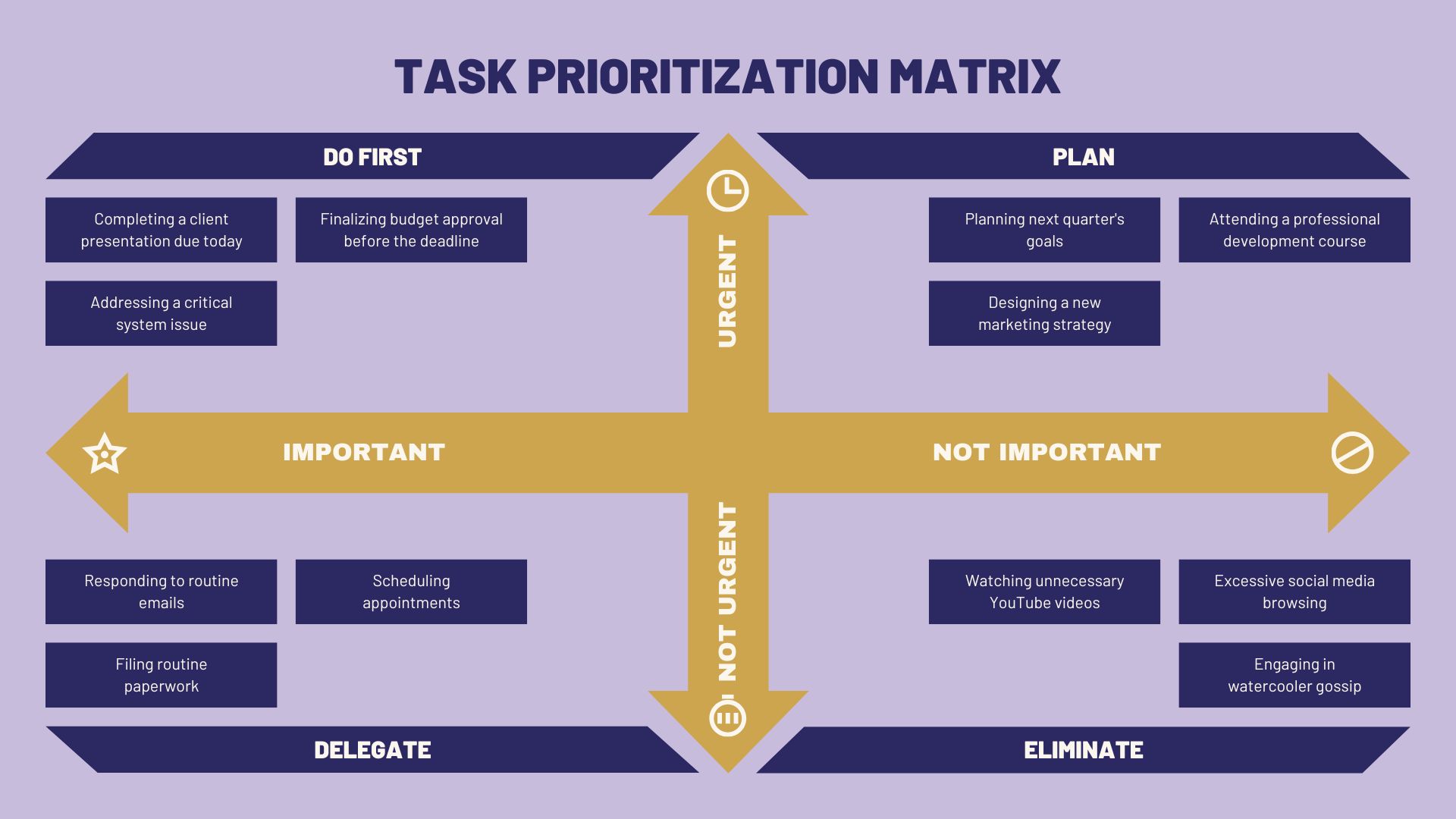 visual image of a task prioritization matrix with quadrants to organize urgent and important task